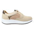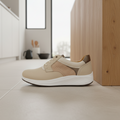 The Sandy is a very comfortable shoe made from soft nubuck leather, combined with catchy accents. Tongue and collar are padded with soft foam to give a comfortable feel. For the lining, calf leather is used in the whole sneaker. Calf leather helps to absorb moisture, has high breathability and is resilient to friction without losing its soft feel. The Sandy shoe is also ideal for diabetes patients when made with special diabetic lining. This sneaker offers enough space to accommodate your custom insole or footbed. The midsole is made from lightweight Eva with an Eva bottom sole. This shoe is all about functional fashion!