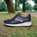 The Ellen is a very comfortable shoe, partially made from special stretch leather, which gives it a unique (custom) fit. This stretch leather is applied on the shoe’s side panels, where it helps to reduce pressure on the hallux or the foot itself. The upper is made from high-quality brown nappa leather combined with suede and decorative metallic leather. Tongue and collar are padded with soft foam to give a comfortable feel. For the lining, a combination of calf leather and soft spacer fabric is used. Both materials help to absorb moisture and have high breathability. The Ellen is also ideal for diabetes patients when made with special diabetic lining. This comfort shoe offers enough space to accommodate your custom insole or footbed. The midsole is made from lightweight Eva and has an Eva bottom sole. This shoe is all about functional fashion!