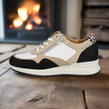 The Emily is a modern everyday sneaker. The upper is made from a combination of high-quality nappa, suede and printed nappa. Tongue and collar are padded with soft foam to give a comfortable feel. For the lining, calf leather is used in the whole sneaker. Calf leather helps to absorb moisture, has high breathability and is resilient to friction without losing its soft feel. The double zippers along the laces can be opened to make stepping into the shoe easier. The Emily sneaker offers enough space to accommodate your custom insole or footbed. The midsole is made from lightweight PU material combined with an Astro-lite bottom sole.