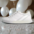 The Hanna is a fashionable sneaker with a great (custom) fit. The upper is made from a high-quality white nappa leather, with distinctive accents. Tongue and collar are padded with soft foam to give a comfortable feel. For the lining, calf leather is used in the whole sneaker. Calf leather helps to absorb moisture, has high breathability and is resilient to friction without losing its soft feel. The Hanna sneaker offers enough space to accommodate your custom insole or footbed. The sole is made from lightweight PU material and can be combined with a lightweight Eva bottom sole or a robust rubber bottom sole. A timeless model that fits many styles!