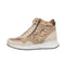 The Cloe is a modern everyday sneaker boot. The upper is made from a combination of high-quality nappa, suede and printed nappa. Tongue and collar are padded with soft foam to give a comfortable feel. For the lining, calf leather is used in the whole sneaker. Calf leather helps to absorb moisture, has high breathability and is resilient to friction without losing its soft feel. The double zippers along the laces can be opened to make stepping into the shoe easier. The Cloe sneaker boot offers enough space to accommodate your custom insole or footbed. The sole is made from lightweight PU material combined with an Astro-lite bottom sole.