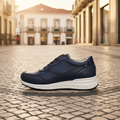 La Liz est un excellent mélange de sportif et habillé en une seule basket. La tige est composée d'une combinaison de nappa de haute qualité et de daim. Les inserts en mesh sur le cou-de-pied ainsi que sur les côtés aident à améliorer la respirabilité et offrent une certaine élasticité. La languette et le col sont rembourrés avec une mousse douce pour offrir une sensation de confort. Pour la doublure, du cuir de veau est utilisé en combinaison avec de l'élasticité dans la boîte à orteils. Le cuir de veau aide à absorber l'humidité, possède une grande respirabilité et est résistant à la friction sans perdre sa douceur. La basket Liz offre suffisamment d'espace pour accueillir votre semelle intérieure ou votre embauchoir personnalisé. La semelle intermédiaire est fabriquée en matériau PU léger combiné à une semelle extérieure Astro-lite.