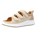 Rianne is een lage sandaal met drie klittenbandsluitingen, gemaakt van zacht leer en verkrijgbaar in verschillende uitvoeringen. De kraag is licht gevoerd met zacht schuim voor een comfortabel gevoel. De voorkant van de sandaal heeft een opstaande rand om uw eigen inlegzool stevig op zijn plaats te houden tijdens het lopen. Door de gesloten achterkant/hiel biedt deze sandaal uitstekende ondersteuning en stabiliteit aan de voet. Alle klittenbandsluitingen hebben een afsnijoptie om ze indien nodig in te korten. De onderste klittenband is vastgezet en heeft geen roller, waardoor er geen druk op de zijkant van de bal van de voet ontstaat. Dit model kan besteld worden met kalfsleren voering of speciale diabetische voering.