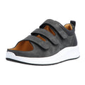 Rianne is een lage sandaal met drie klittenbandsluitingen, gemaakt van zacht leer en verkrijgbaar in verschillende uitvoeringen. De kraag is licht gevoerd met zacht schuim voor een comfortabel gevoel. De voorkant van de sandaal heeft een opstaande rand om uw persoonlijke inlegzool stevig op zijn plaats te houden tijdens het lopen. Door de gesloten achterkant/hiel biedt deze sandaal uitstekende ondersteuning en stabiliteit aan de voet. Alle klittenbandsluitingen hebben een afsnijoptie om ze indien nodig in te korten. De onderste klittenband is vastgezet en heeft geen roller, waardoor er geen druk op de zijkant van de bal van de voet ontstaat. Dit model kan besteld worden met kalfsleren voering of speciale diabetische voering.