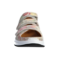 Rianne is a three velcro low sandal made out of soft leather, in several look versions. The collar is lightly padded with soft foam to give a comfortable feel. The front of sandal has a raised edge to keep your custom insole firmly in place whilst walking. Because of the closed back/heel this sandal offers great support and stability to the foot. All velcro's have a cut-off option to shorten them in length when needed. The lower velcro is attached and has no roller, preventing pressure on the side of the ball of the foot. This model can be ordered with calf lining or special diabetic lining.